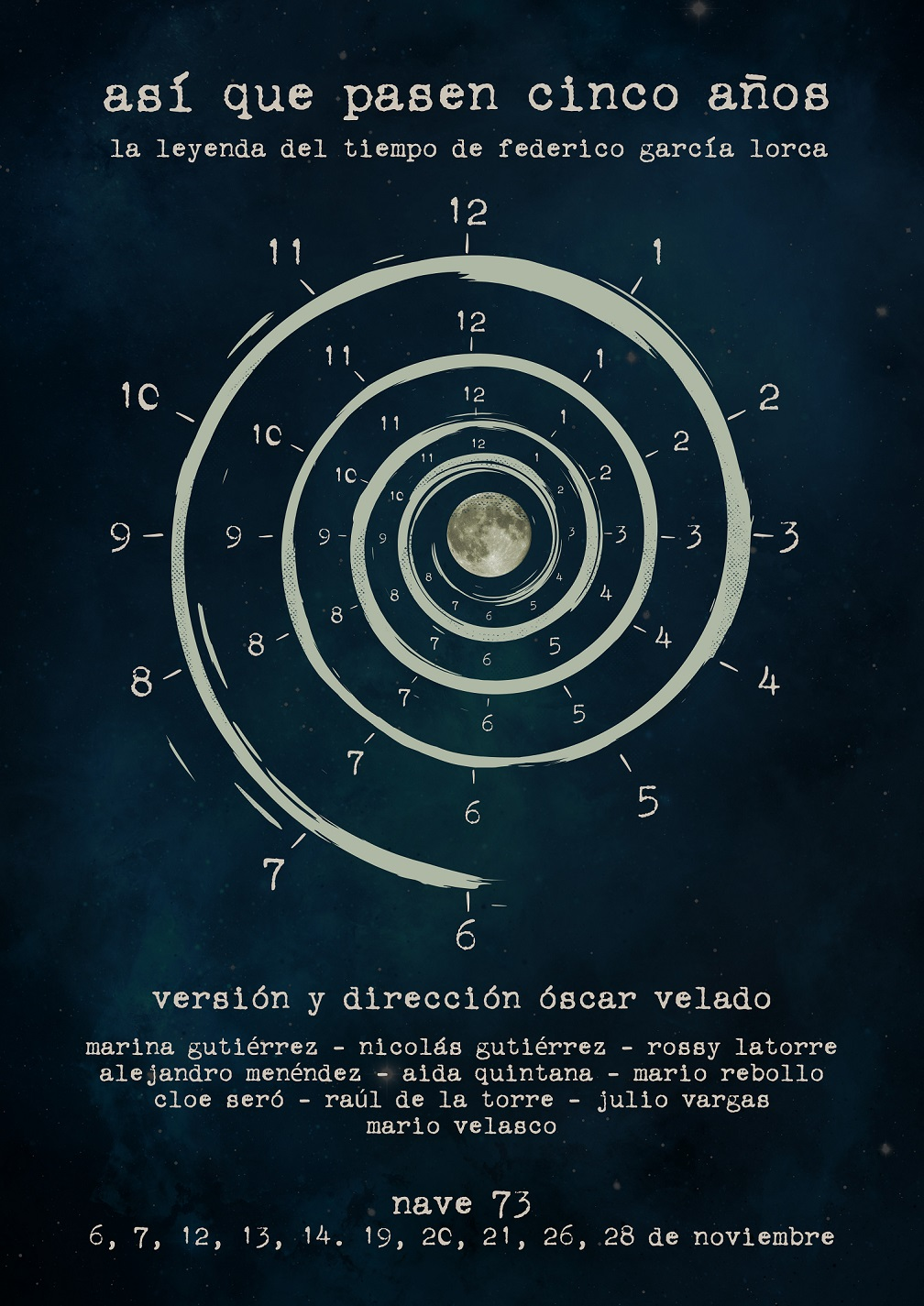La sala Nave 73 nos ofrece la posibilidad de ver una de las obras menos conocidas y por añadidura menos representadas de Federico García Lorca. Así que pasen cinco años se sale de la línea seguida en las obras más famosas del autor granadino y nos muestra parte de la influencia de los personajes con los que coincidió en esa época.
